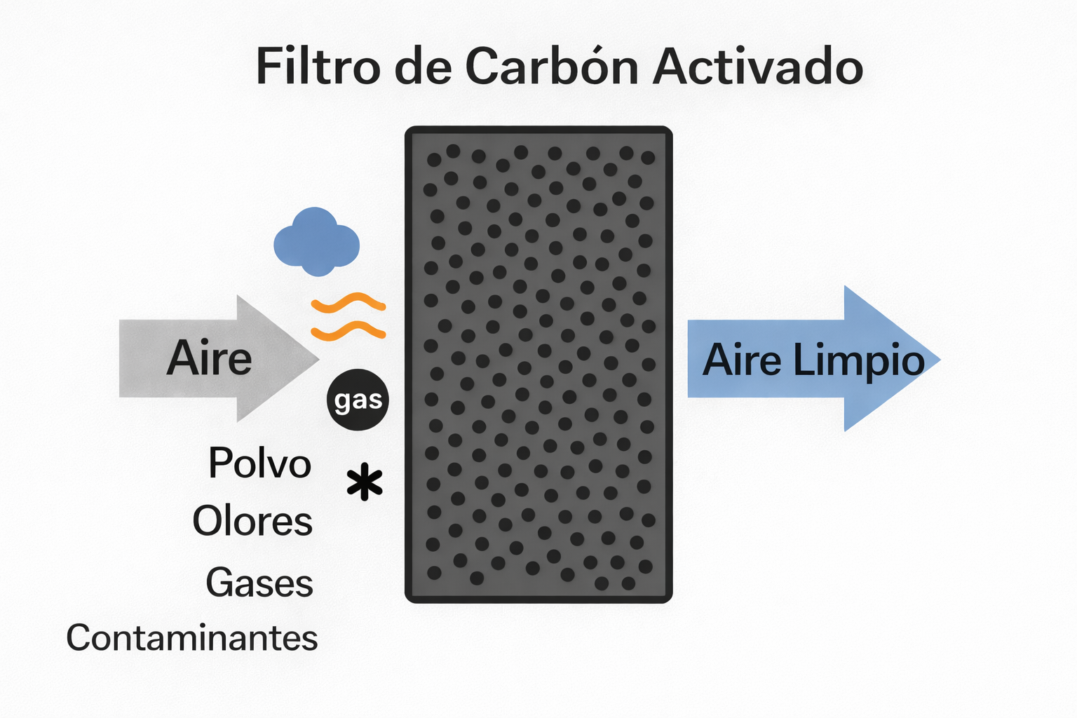 Un filtro de carbón activo actúa como una esponja de olores y contaminantes en el aire.
