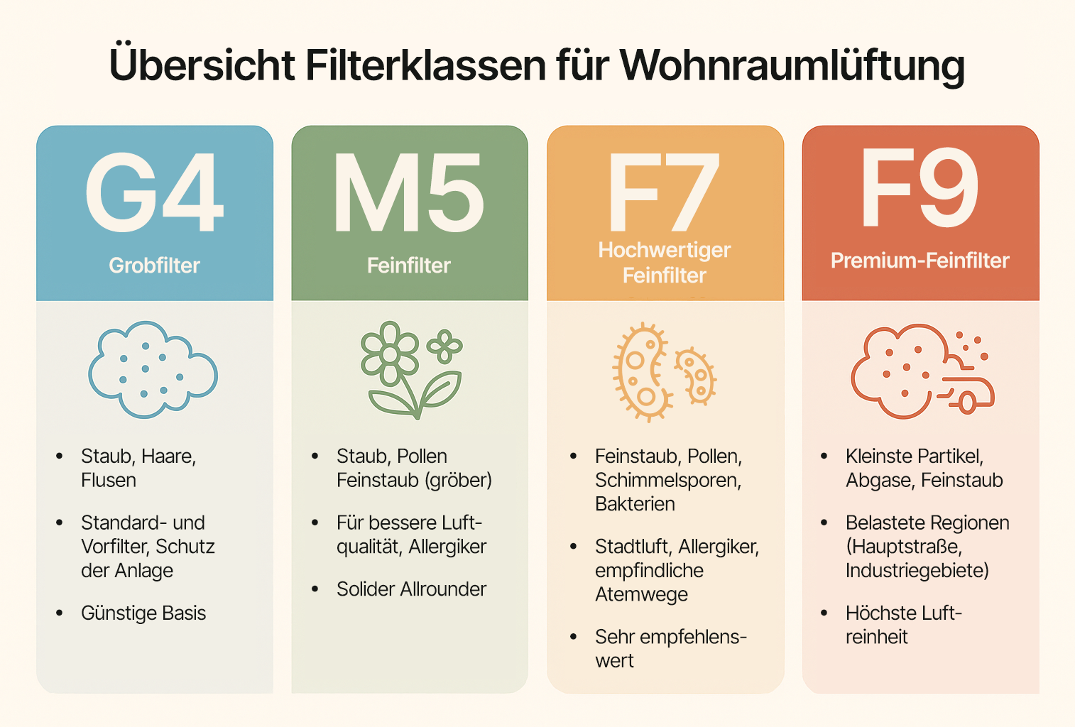 Filterklasse F9 (Feinfilter, höchste Stufe im Wohnbereich)